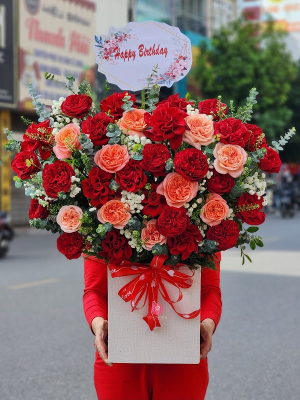 Hộp hoa, giỏ hoa chúc mừng hđ MS488