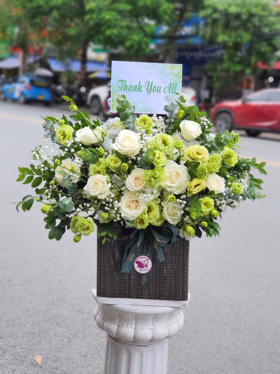 ♦Tặng kèm thiệp chúc mừng, băng rôn, bảng treo theo thông điệp yêu cầu.