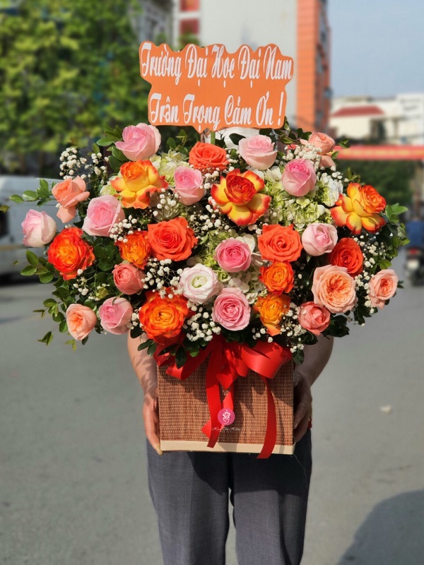 Hộp hoa, giỏ hoa chúc mừng MS381