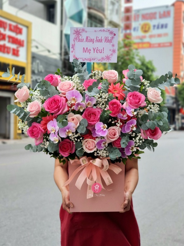 Hộp hoa, giỏ hoa chúc mừng MS438
