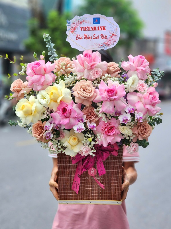 Hộp hoa, giỏ hoa chúc mừng MS557